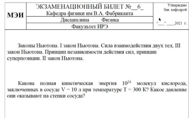 Для студентов НИУ «МЭИ» по предмету ФизикаБилетыБилеты 2019-06-09СтудИзба