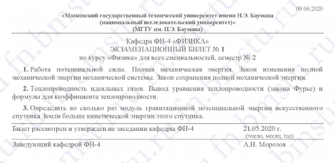 Для студентов МГТУ им. Н.Э.Баумана по предмету ФизикаБилетыБилеты