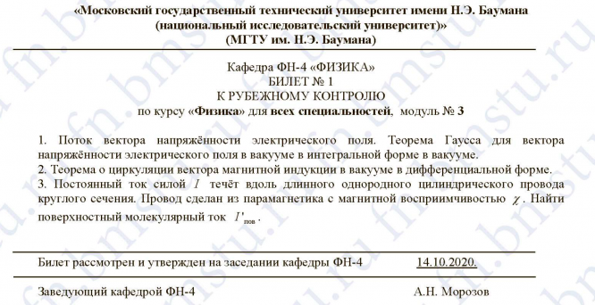 Для студентов МГТУ им. Н.Э.Баумана по предмету ФизикаРк1 (2020) билеты+разбор задачРк1 (2020) билеты+разбор задач