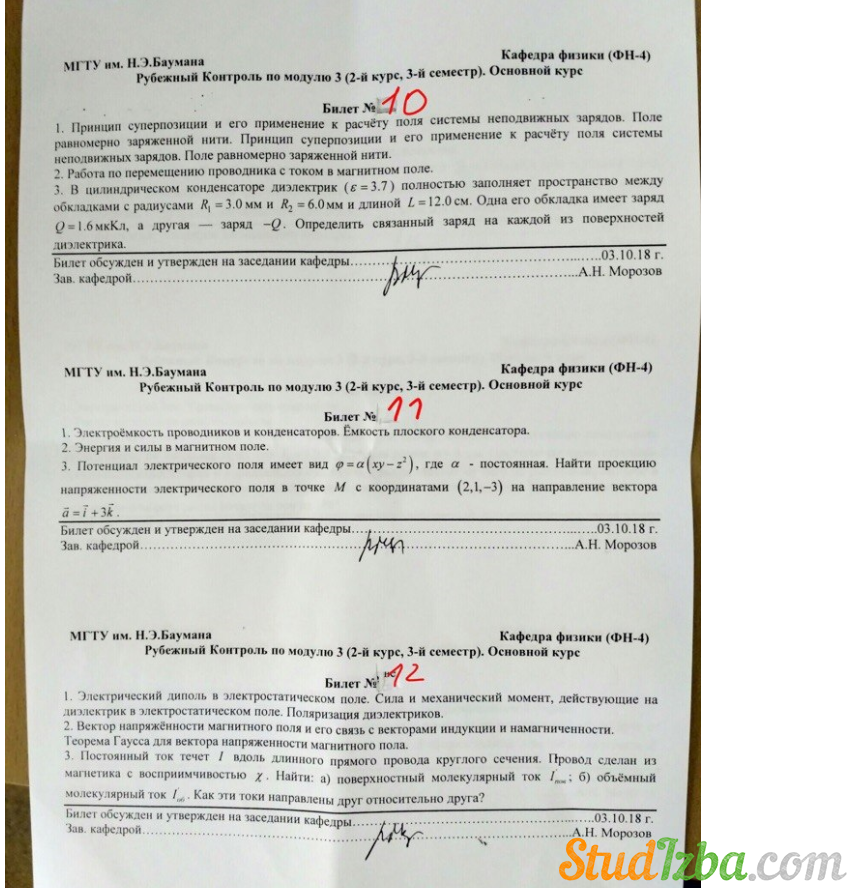Вопросы/задания к контрольной работе: решения ко всем билетам за 18/19 год рк1 по физике (см условие)