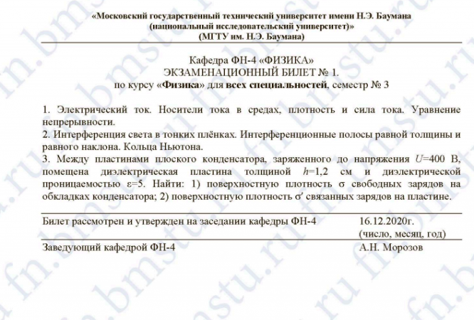 Вопросы/задания к экзамену: Решенные задачи из билетов по Физике 2020
