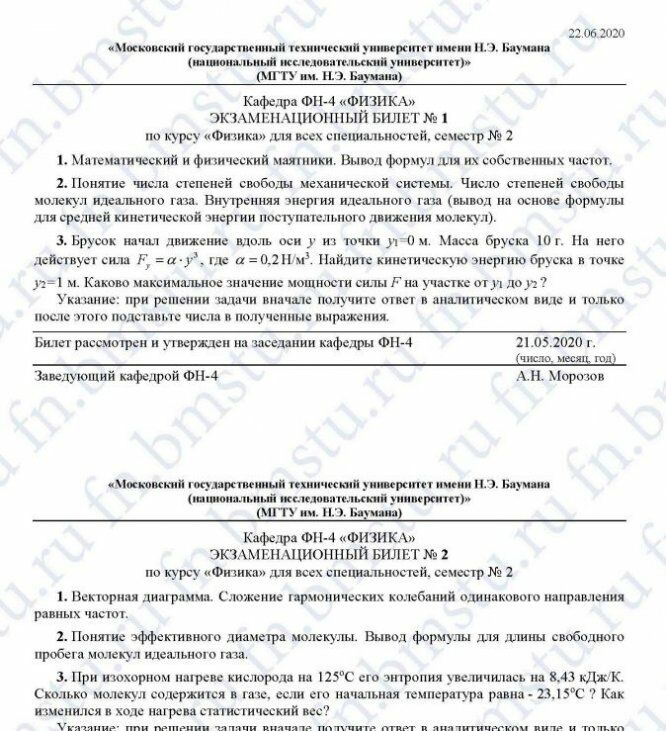 Для студентов МГТУ им. Н.Э.Баумана по предмету ФизикаБилетыБилеты 2021-06-11СтудИзба