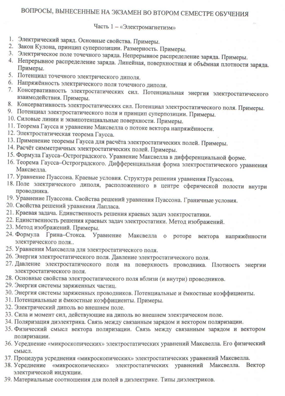 Для студентов НГТУ по предмету ФизикаВопросы к экзаменуВопросы к экзамену