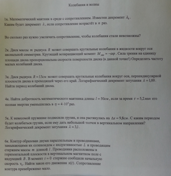 Условия задач - Колебания и волны