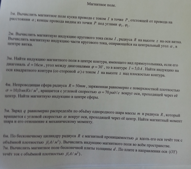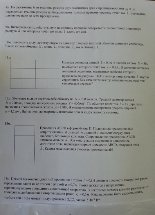Условия задач - Магнитное поле
