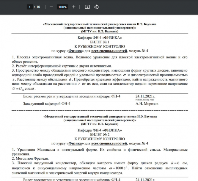 Для студентов МГТУ им. Н.Э.Баумана по предмету Физика30 билетов РК №2 (2021г)30 билетов РК №2 (2021г)