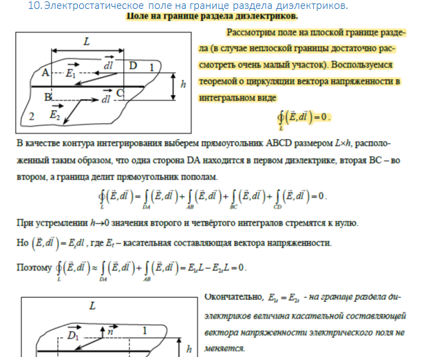 10. Электростатическое поле на границе раздела диэлектриков. 10