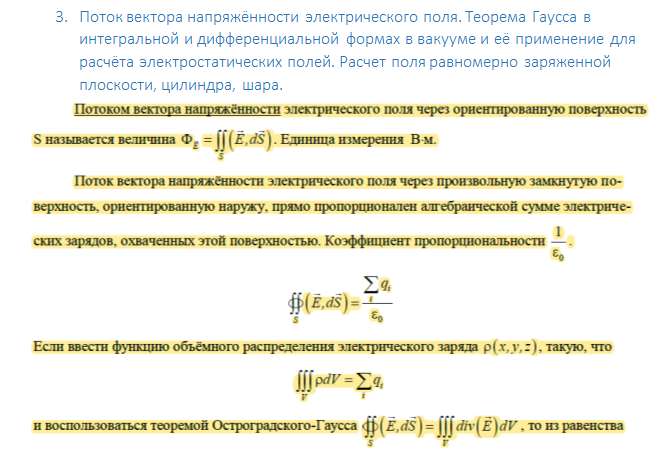 3. Поток вектора напряжённости электрического поля. Теорема Гаусса в интегральной и дифференциальной формах в вакууме и её применение для расчёта электростатических полей. Расчет поля равномерно заряженной плоскости, цилиндра, шара. 4