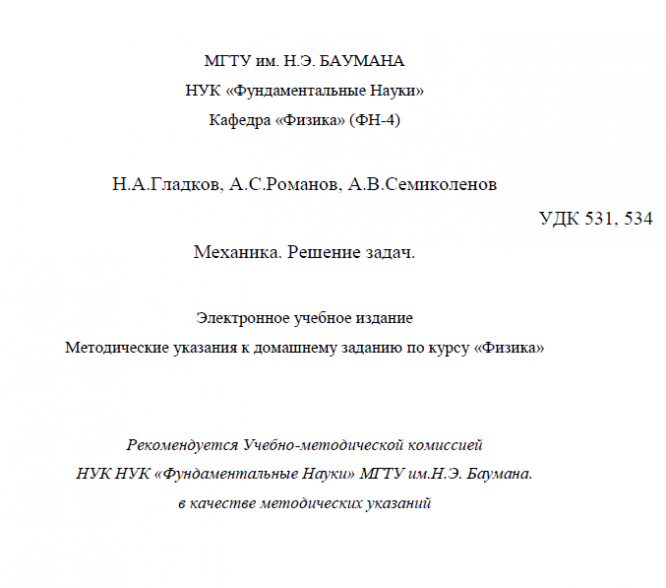 Главная » Учебные материалы » Физика » Вопросы/задания » МГТУ им. Н.Э.Баумана » 2 семестр » Номер 1 » К заданиям » Н.А. Гладков, А.С. Романов, А.В. Семиколенов - Механика. Решение задач - Методические указания к домашнему заданию по курсу "Физика"
