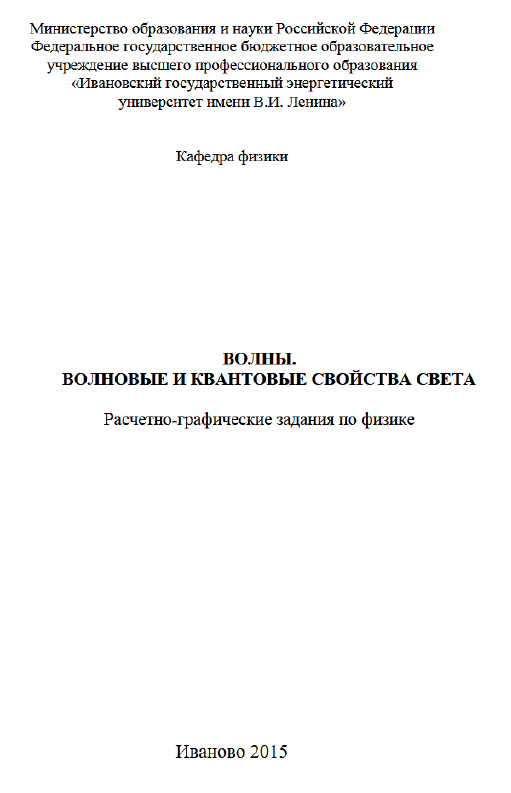 Для студентов ИГЭУ им. Ленина по предмету ФизикаВолны. Волновые и квантовые свойства светаВолны. Волновые и квантовые свойства света