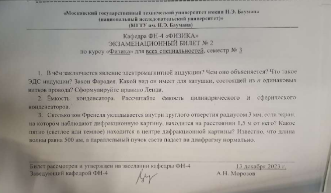 Для студентов МГТУ им. Н.Э.Баумана по предмету ФизикаБилеты к экзаменуБилеты к экзамену