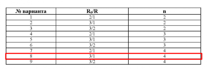 Значения параметров n и R0/R в зависимости от номера варианта.