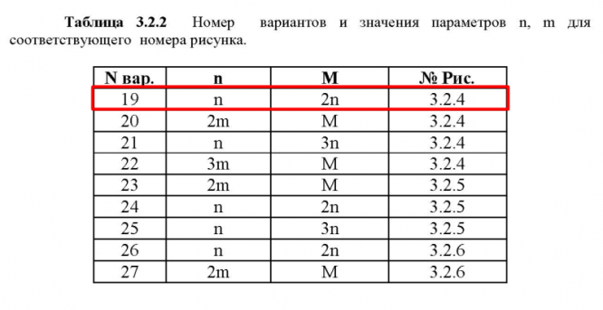 Baumanki.net Таблица 3.2.2 Номер вариантов и значения параметров n, m для соответствующего номера рисунка. .