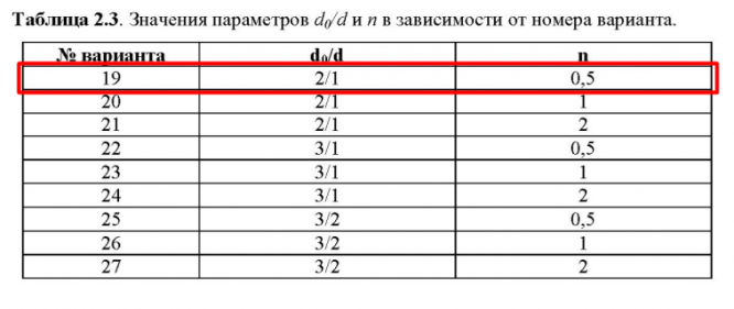 Значения параметров d0/d и n в зависимости от номера варианта. .