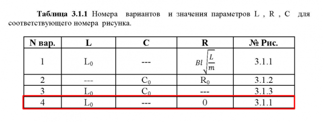 Задача 3.1. По двум гладким медным шинам, установленным вертикально в однородном магнитном поле B скользит под действием силы тяжести медная перемычка массы m, которая замыкает электрическую цепь, приведенную на рисунке. Расстояние между шинами l. Сопротивления шин, перемычки и скользящих контактов, а также самоиндукция контура пренебрежимо малы. Найти закон движения перемычки Y(t) при условии, что начальная скорость, ток через индуктивность и заряд на конденсаторе равны 0, Y(0)=Y0. L C L B B B R R C Y Рис.3.1.1 Рис.3.1.2 Рис.3.1.3 L C L R R C B B B 0 Рис.3.1.4 Рис.3.1.5 Рис.3.1.6 Таблица 3.1.1 Номера вариантов и значения параметров L , R , C для соответствующего номера рисунка. .