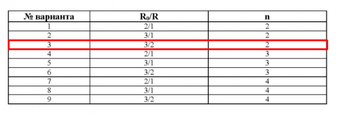 Значения параметров n и R0/R в зависимости от номера варианта.