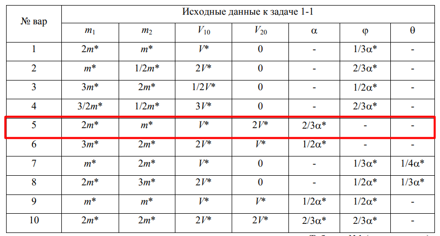 Две гладкие частицы сферической формы с массами m1 и m2, движущиеся со скоростями V10 и V20 , сталкиваются под углом , как указано на рис.1. Расстояние до места встречи и скорости частиц соответствуют условиям соударения (отсутствию промаха).