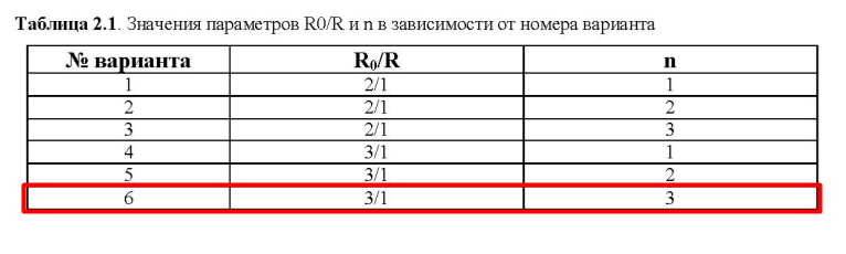 Функция =f(r) для нечётных вариантов имеет вид: =(R0 n +Rn -rn )/Rn . Таблица 2.1. Значения параметров R0/R и n в зависимости от номера варианта.