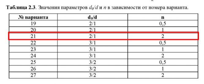 Значения параметров d0/d и n в зависимости от номера варианта. .