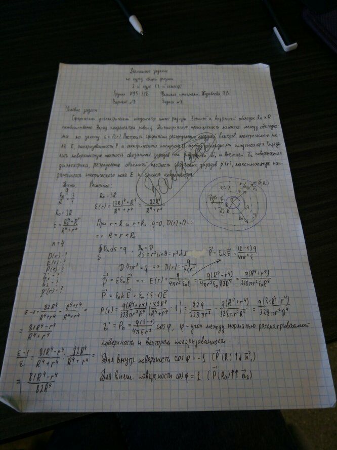 3 семестр, вариант 8, дз по физике №1 про сферический диэлектрический конденсатор, проверено и подписано преподавателем (Корогодина :) )
