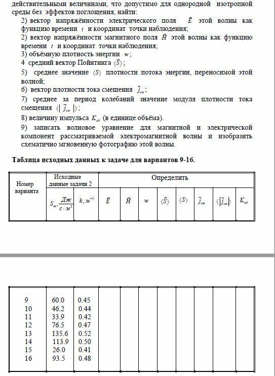 Задача 4: Электромагнитные волны вариант 10