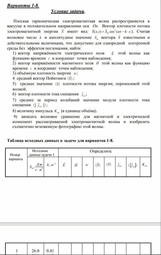 Задача 4: Электромагнитные волны вариант 1