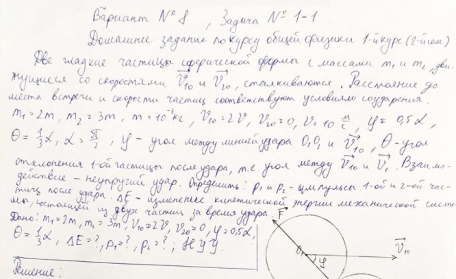 Задача 1: Динамика материальной точки вариант 8