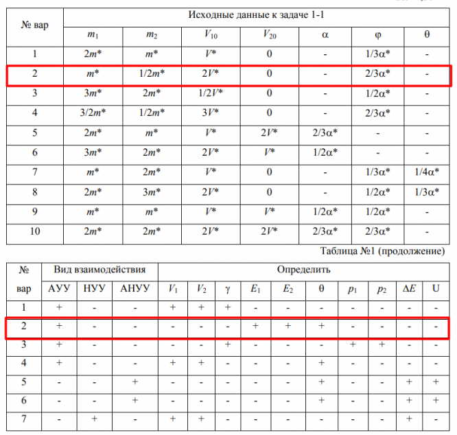 Задача 1-1 для вариантов с 1 по 10