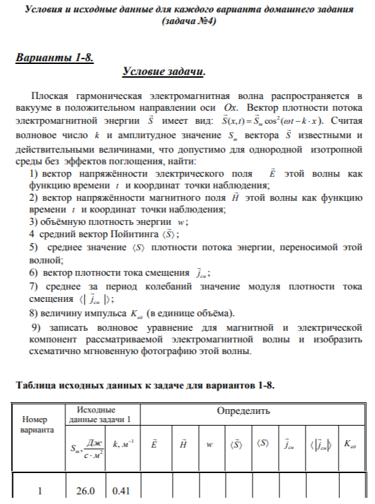 Задача 4: Электромагнитные волны вариант 1