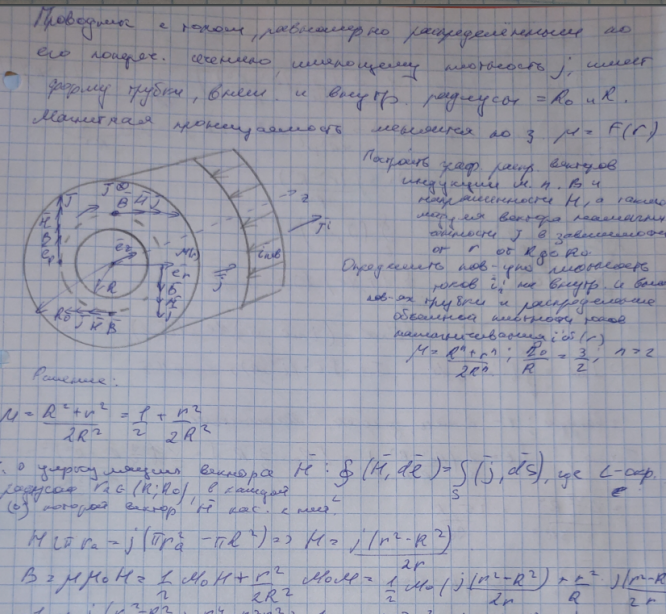 Найти зависимость индукции В и напряженности Н магнитного поля, а также намагниченности J среды в зависимости от радиальной координаты R0