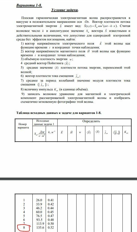 Задача 4: Электромагнитные волны вариант 8