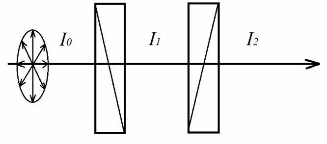 Главная » Учебные материалы » Физика » Решения задач » Несколько классов/семестров » Один поляроид пропускает 30% света, если на него падает естественный свет. После прохождения света через два таких поляроида интенсивность падает до 9%. Найти угол между осями поляроидов.
