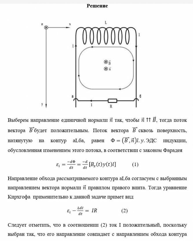 - силу F(t), действующую на перемычку, необходимую для обеспечения заданного закона движения.
