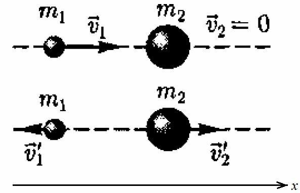 Для студентов по предмету ФизикаПри центральном абсолютно упругом ударе движущееся тело массой m_1 ударяется о покоящееся тело массой m_2, в результате чего скорость первого тела умеПри центральном абсолютно упругом ударе движущееся тело массой m_1 ударяется о покоящееся тело массой m_2, в результате чего скорость первого тела уме