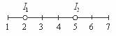 На рисунке изображены сечения двух длинных прямых проводников, расположенных перпендикулярно плоскости чертежа. По проводникам протекают токи в противоположных направлениях. Величина второго тока в два раза больше величины первого. В какой из указанных точек индукция магнитного поля максимальна, если расстояние между точками равны между собой? В ответе указать номер точки.