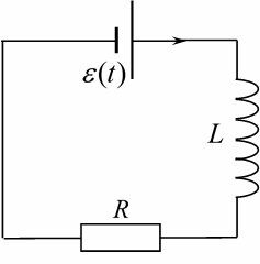 Электрическая цепь состоит из катушки индуктивностью L = 0,5 мГн, резистора сопротивлением R = 100 Ом и источника тока, ЭДС которого меняется со временем по заданному закону E(t)=E0(1-e(-t/τ)) (рис. 15). Найти зависимость от времени силы тока I(t) в