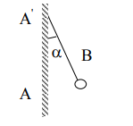 На рисунке АА' – заряженная бесконечная плоскость с поверхностной плотностью заряда σ=40 мкКл/м2 и В – одноимённо заряженный шарик с массой m=1 г и зарядом q=1нКл. Какой угол α с плоскостью АА' образует нить, на которой висит шарик?