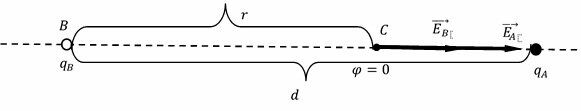 Главная » Учебные материалы » Физика » Решения задач » Несколько классов/семестров » Поле создано двумя точечными зарядами +2 q и – q, находящимися на расстоянии d=12 см друг от друга. Найти точку на прямой, соединяющей заряды, в которой потенциал φ поля равен нулю. Определить напряжённость Е поля в этой точке.