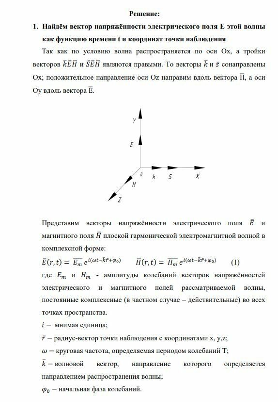 1. Вектор напряжённости электрического поля E этой волны как функцию времени t и координат точки наблюдения;