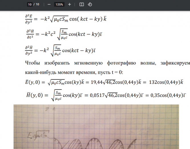 - записать волновое уравнение для магнитной и электрической компонент рассматриваемой электромагнитной волны и изобразить схематично мгновенную фотографию этой волны.