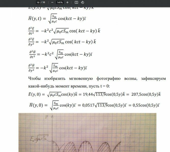 9. записать волновое уравнение для магнитной и электрической компонент рассматриваемой электромагнитной волны и изобразить схематично мгновенную фотографию этой волны.
