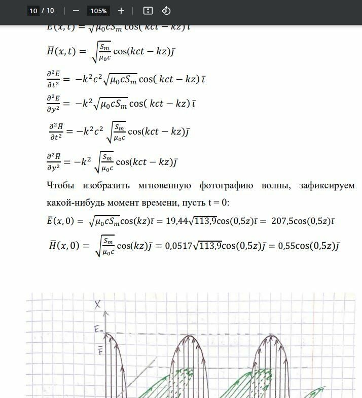 - записать волновое уравнение для магнитной и электрической компонент рассматриваемой электромагнитной волны и изобразить схематично мгновенную фотографию этой волны.
