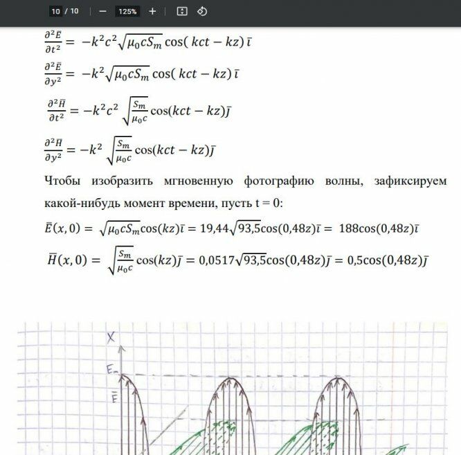 - записать волновое уравнение для магнитной и электрической компонент рассматриваемой электромагнитной волны и изобразить схематично мгновенную фотографию этой волны.