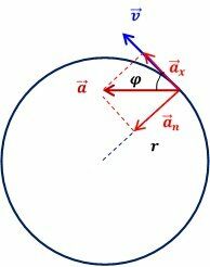 Материальная точка начинает двигаться по окружности радиусом r=2,5 см с постоянным тангенциальным ускорением ax=0,5 см⁄с2 . Определить: 1) момент времени, при котором вектор ускорения a образует с вектором скорости v угол 45º; 2) путь, пройденный
