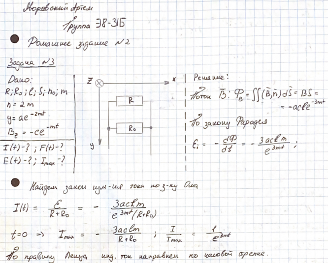 Домашняя задача №3 "Электромагнитная индукция" + графики, зачтено на максимальный балл