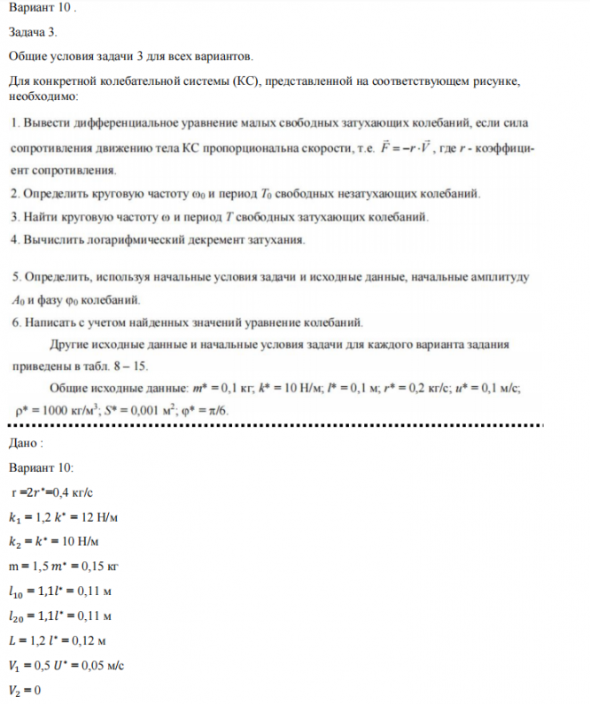 Задача 3: Колебания вариант 10
