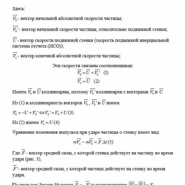 F - модуль средней силы, с которой частица действует на стенку во время удара;