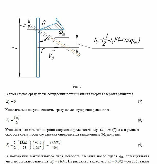 V0m – минимальная горизонтальная скорость стержня, а ω0m – соответственно минимальная угловая скорость стержня, при которой он после удара способен коснуться горизонтальной поверхности преграды;