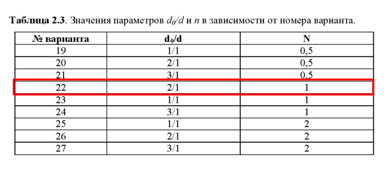 известный параметр. Таблица 1.3. Значения параметров n и d0/d в зависимости от номера варианта.