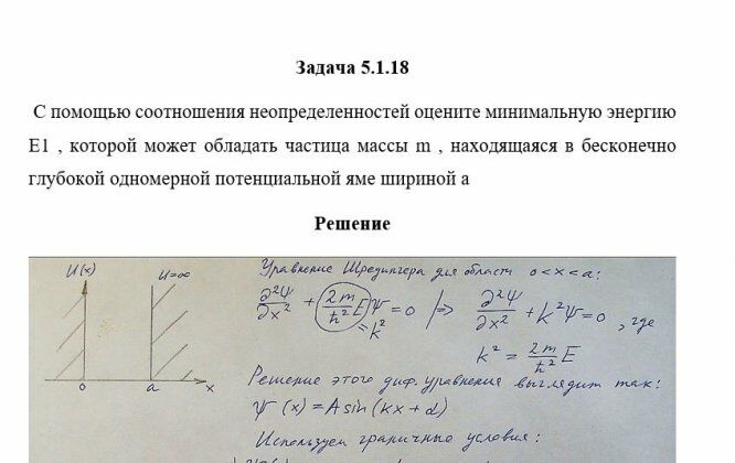 С помощью соотношения неопределенностей оцените минимальную энергию E1 , которой может обладать частица массы m , находящаяся в бесконечно глубокой одномерной потенциальной яме шириной а